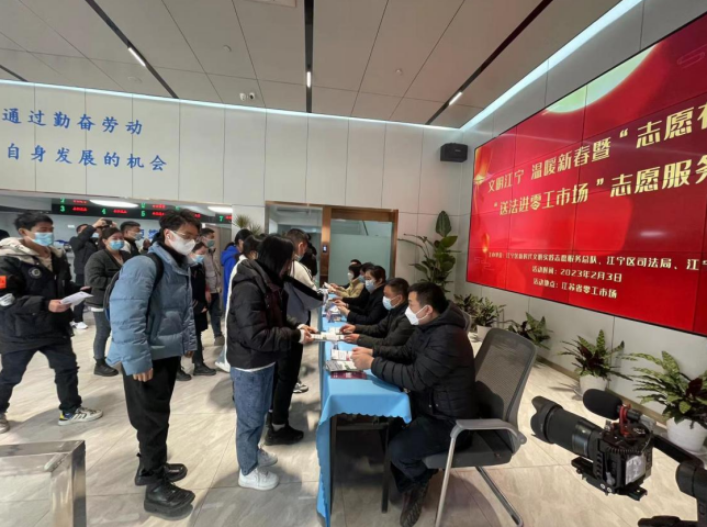 (2023年2月3日,江寧區新時代文明實踐中心在江蘇省零工市場開展“送法進零工市場”活動)