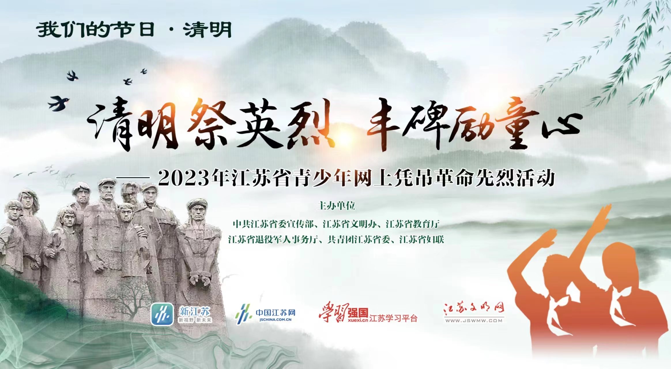 據悉,“清明祭英烈 豐碑勵童心”——2023年江蘇省青少年網上憑吊革命先烈活動也已正式啟動。活動將充分發揮網絡平臺覆蓋面廣、傳播力強、參與度高的優勢,運用新媒體技術豐富教育載體,引導廣大青少年緬懷革命先烈、賡續紅色基因。