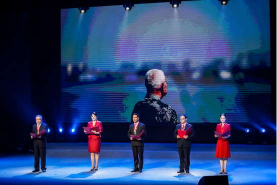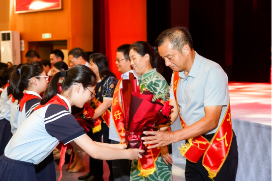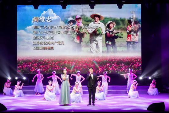 演出開始前,厲正香、韓素玲、袁良萍等12位高郵本地的先進典型接受了高郵學生代表為他們獻上的鮮花。