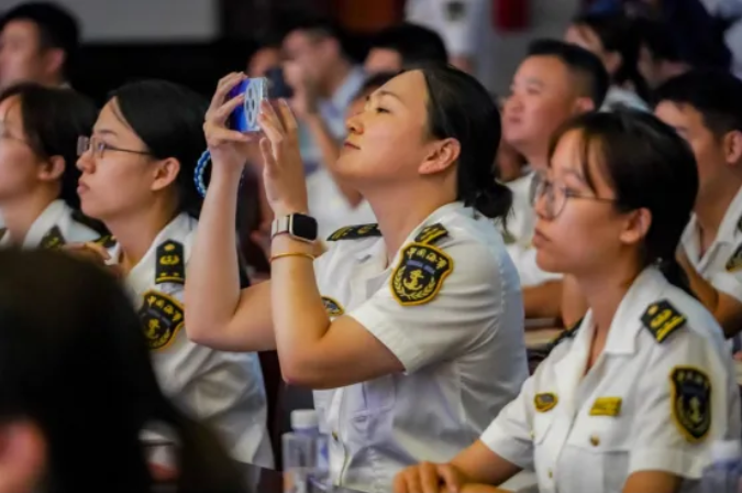 舞臺上,海事人的傾情演繹,深深打動了現場觀眾?!敖裉斓难莩鲎屛腋杏|頗深,作為新時代海事青年,我們生逢盛世,更當不負青春,我們會積極響應時代號召,在交通強國建設的新征程中,為奮力譜寫壯麗的長江航運新篇章奉獻青春力量。”鎮江海事局政務中心一級行政執法員張蓉表示。