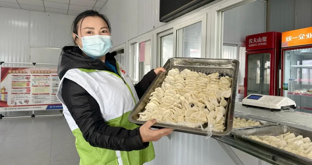 拌餡、包餃子、煮餃子,志愿者們與工友們一起,分工有序、齊心協力,不時聊聊家長里短、時事趣事,現場歡聲笑語不斷,氤氳著溫馨暖心的氣息。熱氣騰騰的餃子很快出鍋,工友們端起盤子、吃在嘴里、暖在心里,所有人感受到了家一般的味道和溫暖。