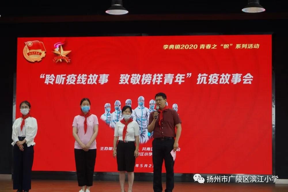 共青團揚州市學少部部長陳慧阿姨,共青團廣陵區委副書記周為叔叔、李典鎮黨群工作局副局長李秋子姐姐也受邀出席我們的活動。周為叔叔在致辭中說,新時代共青團員接過青春接力棒,在戰疫一線用實際行動詮釋了責任與擔當。同時勉勵少先隊員們要以青年榜樣為標桿,成長為心有大愛,肩挑大任,向上向善的新時代好隊員。