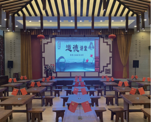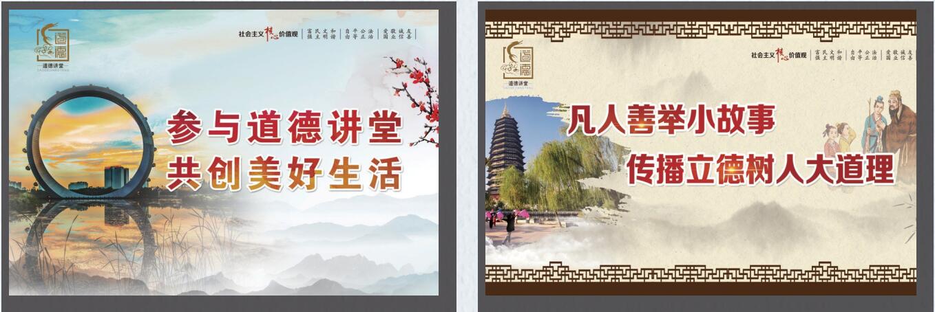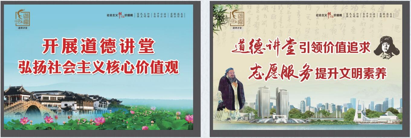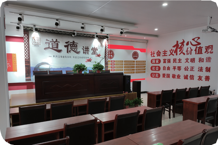 二是環境莊重典雅。注重道德講堂活動場所環境氛圍營造,有統一的道德講堂標識和背景,利用道德箴言、模范畫像等進行展陳布設。通過展陳布設形象生動地宣傳社會主義核心價值觀,讓參加活動的受眾浸潤其間,觸發敬畏、收心靜心。
