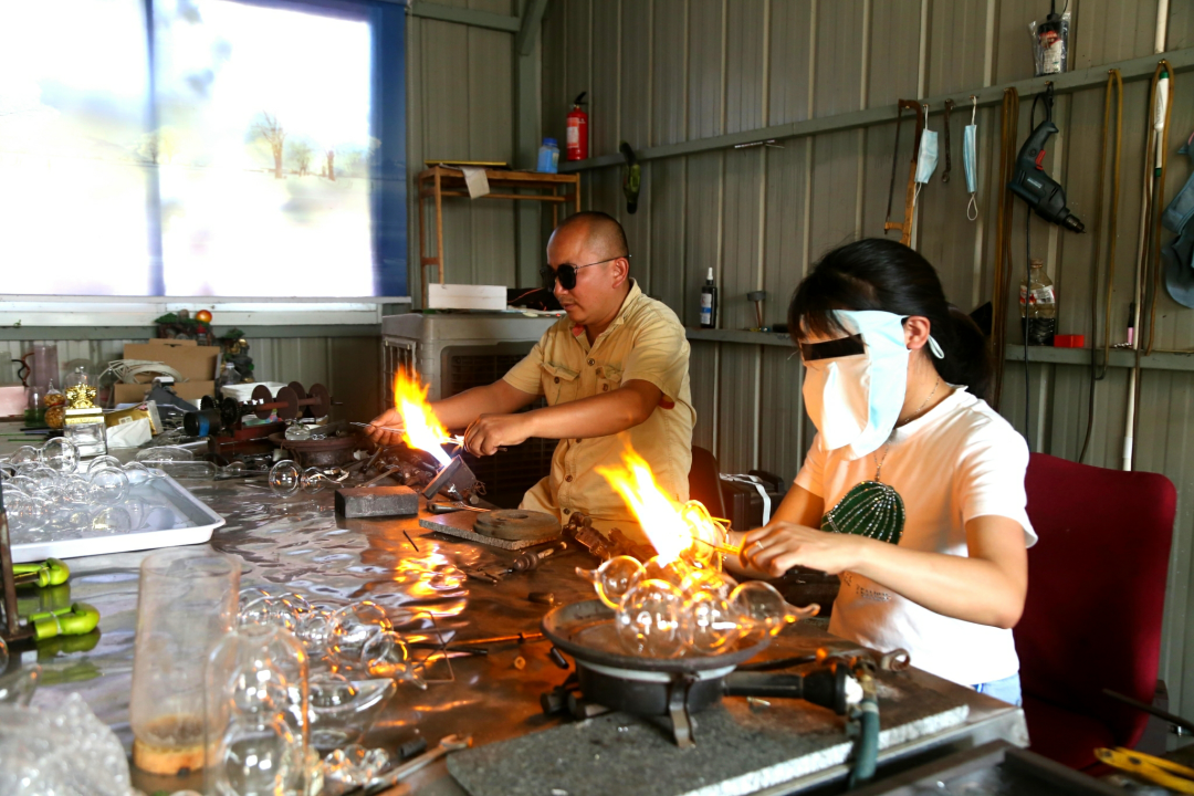 從廣州回來后,兩個人到小官莊玻璃廠上班,李吉春是吹玻璃的熟手,賴月萍卻一點不會,她主動要求學習吹玻璃,不怕悶熱、不懼活多,她手腳勤快悟性強,很快學會了吹玻璃的技術,打工幾年后,兩個人決定回家辦玻璃加工廠。小廠子搭建好了兩個月,沒有一份訂單上門,李吉春就到以前打工的玻璃企業(yè)懇請人家分一點訂單給他們做,都說同行是冤家,但李吉春誠實本分,給他們留下極好的印象,訂單多時會分一些急活給他。